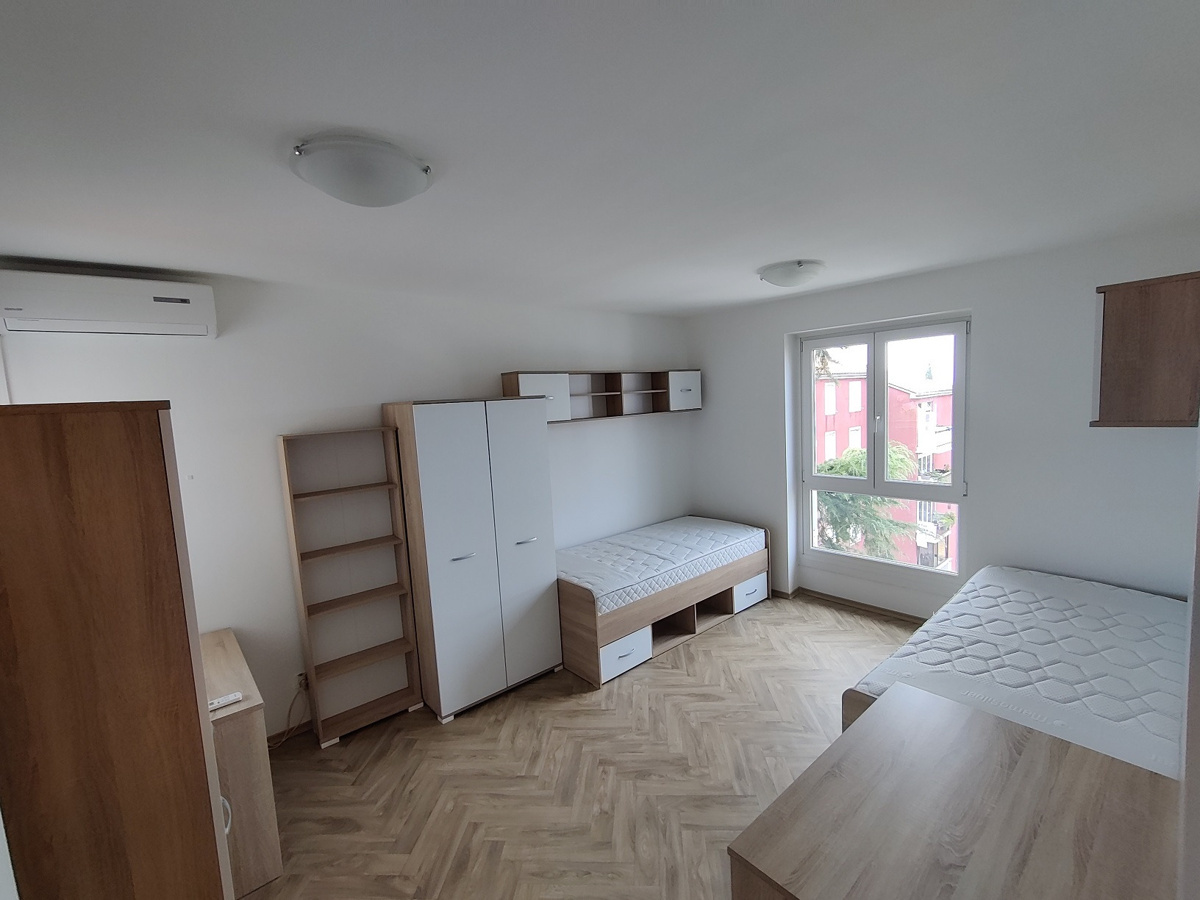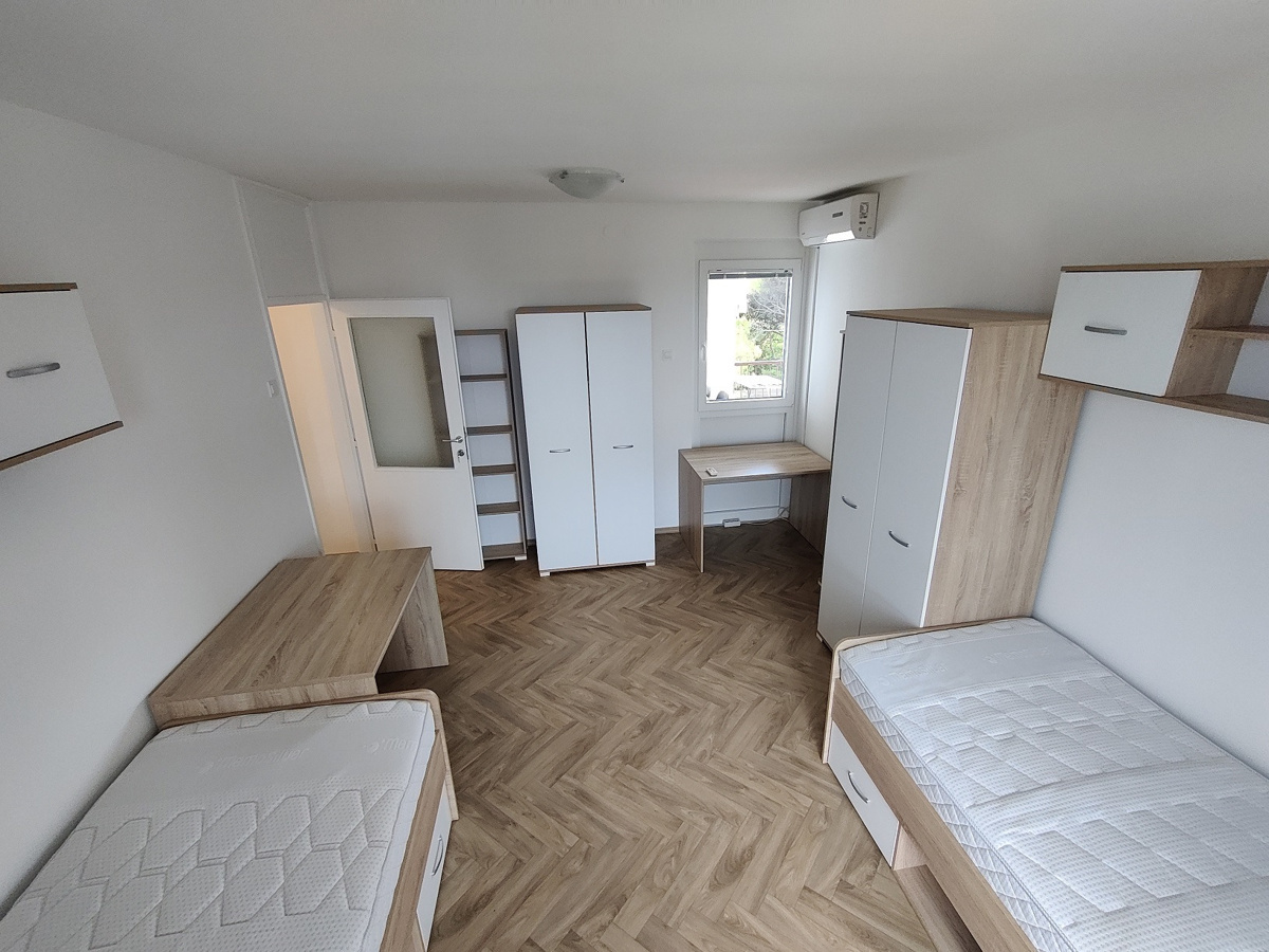 Iščemo študentko za souporabo dvoposteljne sobe v Izoli. Najemnina znaša 200 EUR/mesec + stroški. Vselitev je možna 1. 1. 2026, najemna pogodba pa velja do 19. 6. 2026. Stanovanje je prenovljeno in v celoti opremljeno (kuhinja s pečico, hladilnik, mikrovalovna pečica, klima) ter ima skupno kopalnico. V stanovanju trenutno bivata dve študentki in dva študenta. Za ogled prosim pošljite SMS.