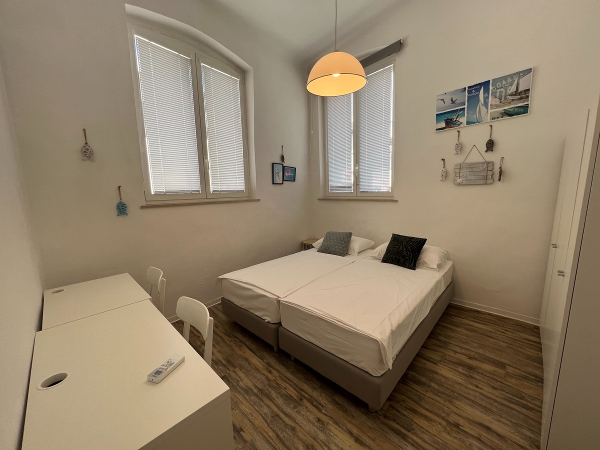 Oddam dvoposteljno sobo v centru Kopra, primerna za dve osebi. Soba se nahaja v večjem, urejenem stanovanju in je na voljo od 1. februarja. Cena 250 € / osebo na mesec Fiksni stroški: 80 € / osebo na mesec Stanovanje je prostorno in primerno za mirne in odgovorne najemnike. Skupno obsega: 8 sob, 4 kopalnice, Skupna, opremljena kuhinja, WiFi, Klima Soba je svetla, prijetna in se nahaja na odlični lokaciji — v neposredni bližini centra, trgovin, avtobusne postaje in fakultet. Primerno za študente, pare ali dva posameznika