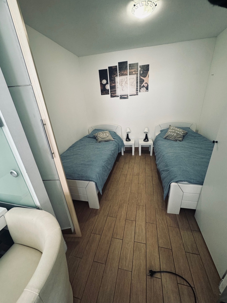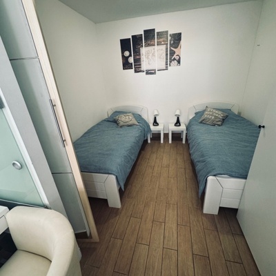 Subvencionirano dvosobno stanovanje velikosti 47m2,oddamo za obdobje februar2026 do 20.06.2026. Stanovanje se nahaja v starem mestnem jedru Kopra, je v pritličju in ima lasten vhod. Obsega dnevni prostor z zakonsko posteljo in manjšo sobo z dvema ločenima posteljema. Stanovanje je popolno opremljeno. V dnevnem prostoru je jedilna miza, TV z velikim ekranom, WiFi. Kuhinja vsebuje korito, steklokeramično ploščo, pečico, mikrovalovno pečico, grelnik za vodo, pekač, velik hladilnik z zmrzovalnikom, aparat za kuhanje kave. V kopalnici je tuš kabina, umivalnik, WC, pralni stroj. Univerze: Pedagoška fakulteta, Fakulteta za humanistične študijee, Fakulteta za management, Fakulteta za matematiko, naravoslovje in informatiko so od stanovanja oddaljene cca 10 min peš. V neposredni bližini je trgovina Spar, v biližini pa pekarna in tržnica. Stanovanje je primerno za 3 študente. Cena za posameznega študenta je 250 Eur/mesec. Cena za najem celotnega stanovanja za manj kot 3 študente, je 650 Eur/mesec. V ceno niso vključeni stroški (elektrika, voda, komunala, internet). Varščina je dvomesečna najemnina. Stroški so v povprečju med 50 in 60 Eur na osebo (za 3 študente), odvisno od porabe. Trenutno TV ni vključen, se pa lahko doda (cca. 30Eur/mesec) Resni pokličite ali pišite SMS na +386 41735329 ali na mail anita.zebec@siol.net. Stanovanje je trenutno oddano, zato je za ogled potreben dogovor.