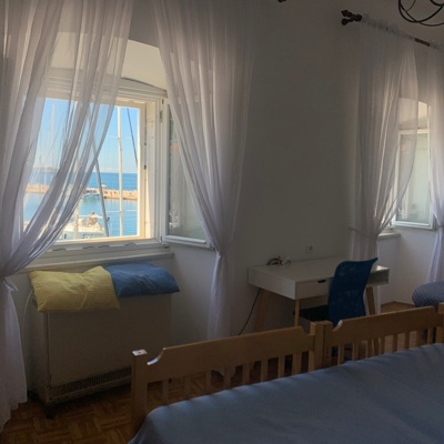 PIRAN; ODLIČNA CENA, na odlični lokaciji v palači v prvi vrsti ob morju (prvo nadstropje, tik nad piransko pošto pošta) oddajamo 75 m2 veliko stanovanje štirim študentom oz. študentkam (zelo velika dvoposteljna soba z enkratnimi pogledi na morje, cca 15m2 velika samska soba in kabinet). Skupna je kuhinja z jedilnico, kopalnica s pralnim strojem in predprostor. Dva študenta sta nepričakovano prenehala s študijem. Posledično se je za enega študenta moškega spola sprostilo eno ležišče v dvoposteljni sobi (200 EUR) in samska soba. Cena ležišča v sobici je 200 EUR - subvencija + stroški. Ker se je študent v dvoposteljni sobi pripravljen preseliti tudi v enoposteljno, obstaja tudi možnost, da se dvema študentoma, dvema študentkama ali paru odda dvoposteljna soba. Oddajamo izključno urejenim študentkam(om), rednim plačnicam (kom). Stroški so normalno visoki in se obračunavajo po porabi. Iz Pirana do Bernardina vozi brezplačni avtobus na deset minut, za študente možnost cenovno ugodnega parkiranja avtomobila na Fornačah. Telefon: 031 368 735